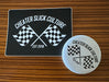We are all about racing...and this sticker and pin combo shows that!